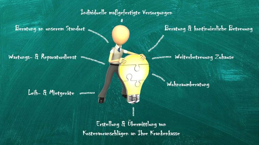 Unser Team bietet Ihnen eine sichere und umfassende Unterstützung im Bereich der Reha-, Hilfsmittel- und Pflegeversorgung. Hierbei unterstützen wir Sie gerne bei der Auswahl bedarfsgerechter Produkte in Kooperation mit der Klinik bzw. Ihrem behandelnden Arzte.